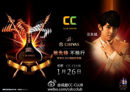 1/26にシーバスリーガル(ウイスキー)のパーティーが成都のCC-CLUB で行われ、大東が登場した模様〜(^O^)